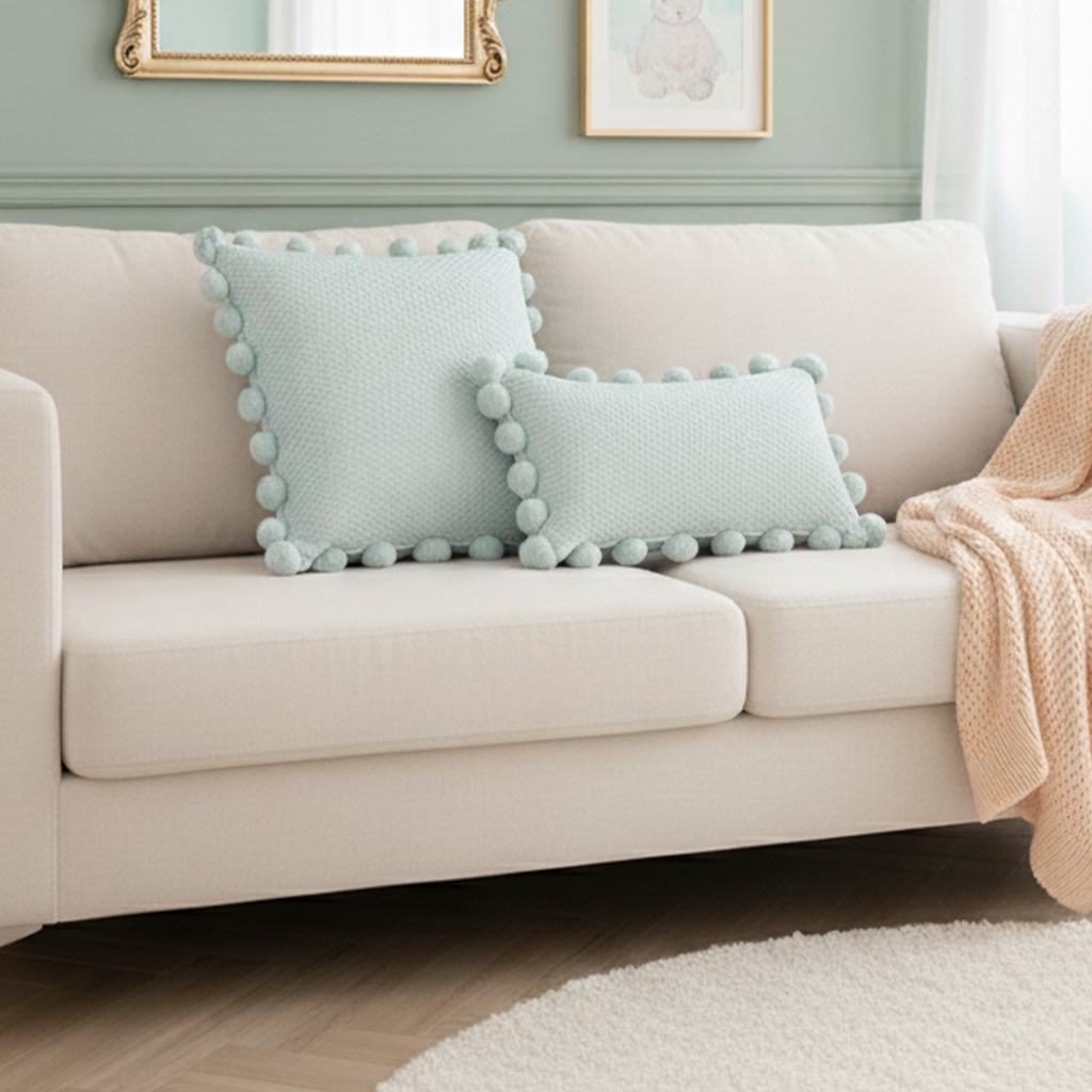 Introduce a touch of whimsy with our Blue Ashton Cushion Cover. Its playful pom pom detail adds a charming touch to any kids' room. Made from soft, premium materials, it's perfect for snuggling up with a favorite storybook or for adding a pop of color to a reading nook.