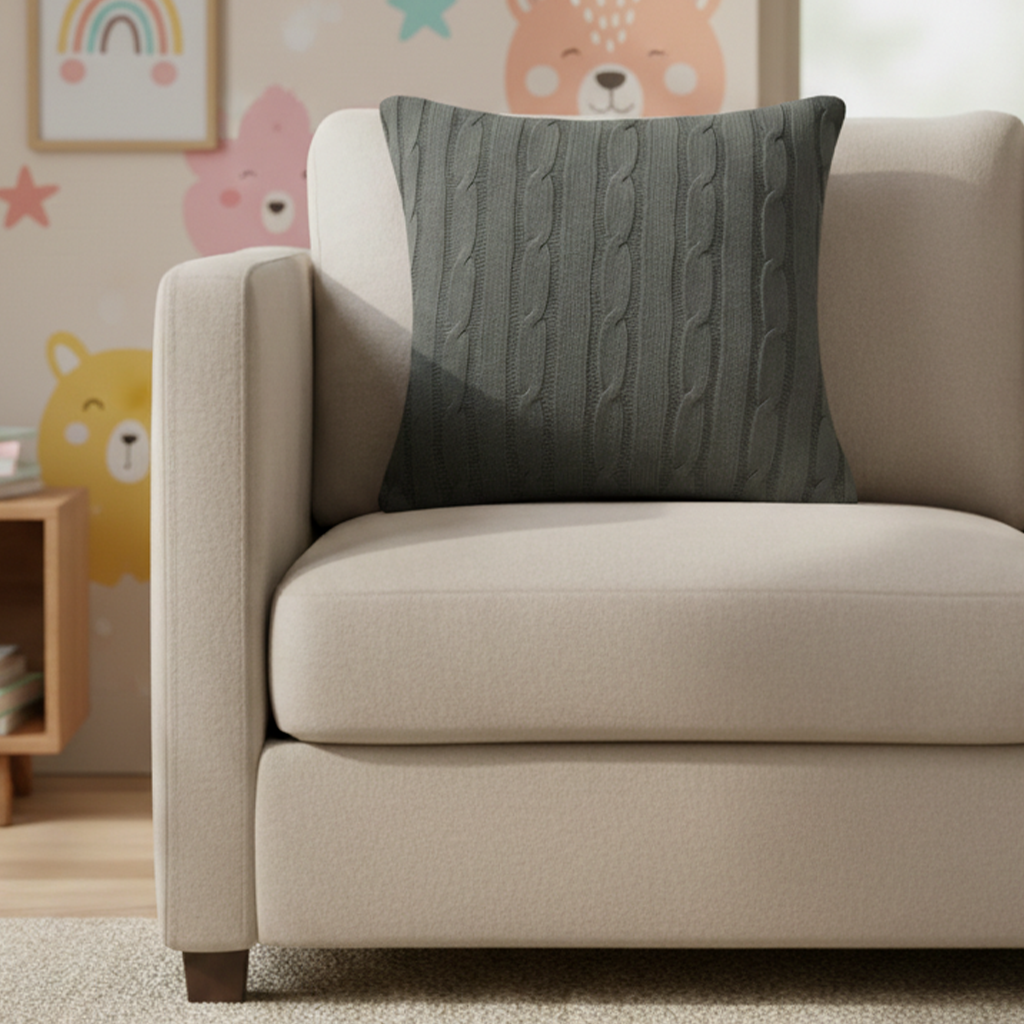 Grey Cable Knit Cushion Cover