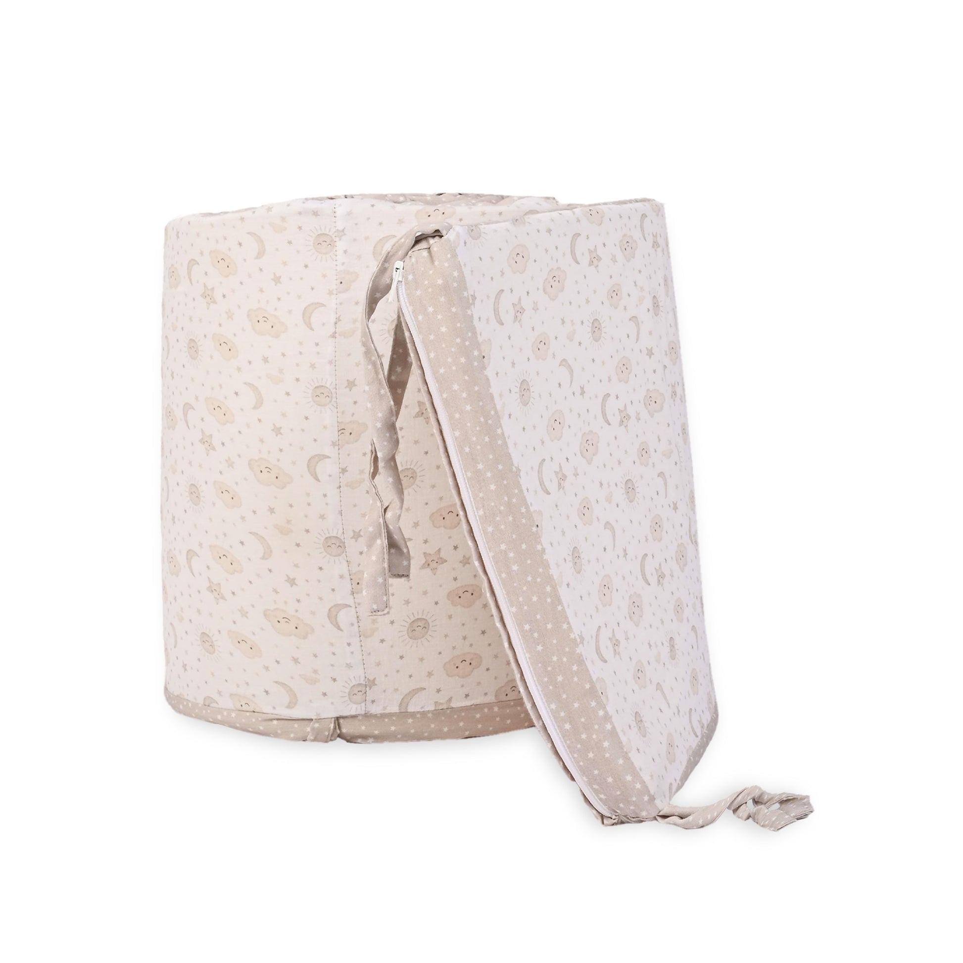 The Sleepy Stars Crib Bumper adds a touch of magic and comfort to your little one’s crib. Crafted in breathable cotton with a soft star pattern, it cushions your baby’s space while maintaining airflow. Thoughtfully designed for both comfort and style, it completes your nursery with calm charm.