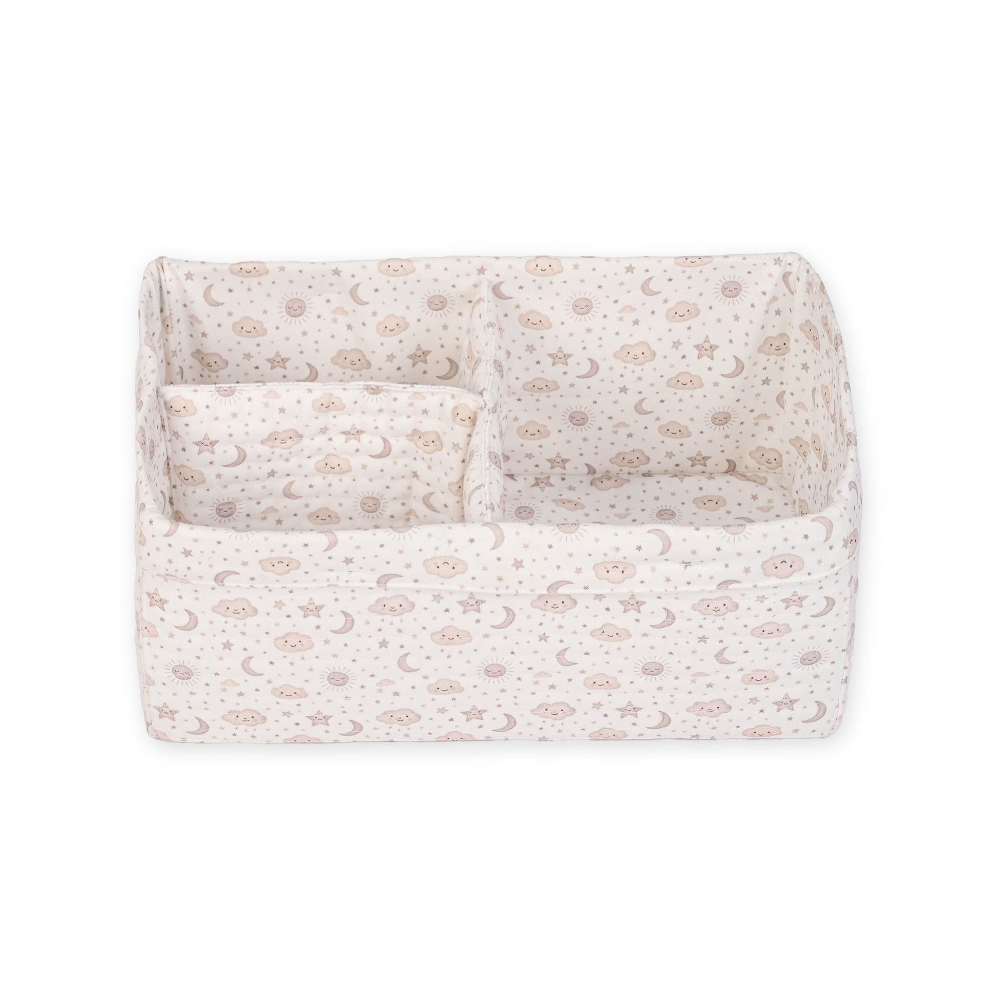 Keep your nursery beautifully organized with our Quilted Diaper Caddy. Thoughtfully designed with multiple compartments, it gives every essential — from diapers and wipes to creams and toys — its own place, making daily routines smoother and stress-free. Lightweight yet sturdy, it’s easy to carry around the house or pack into the car for outings. With its quilted fabric and refined finish, this caddy turns everyday storage into an elegant nursery accessory — a must-have for moms who want both style and function.