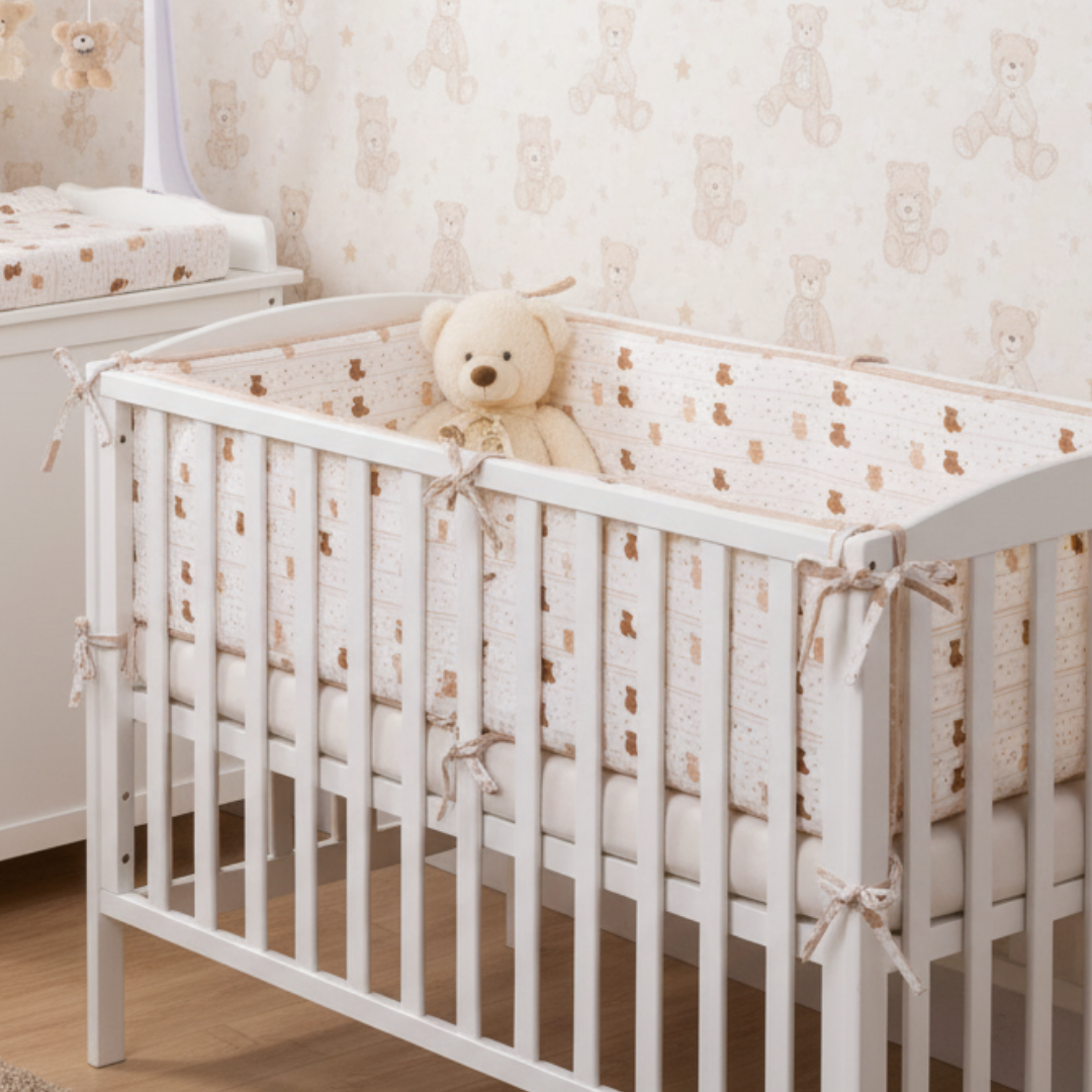 Make your baby’s crib a haven of comfort with our Teddy Tales Crib Bumper. Crafted from soft, breathable cotton and padded with gentle foam, it provides protection and warmth. The teddy print adds a playful touch, perfect for creating a nursery filled with character and care.