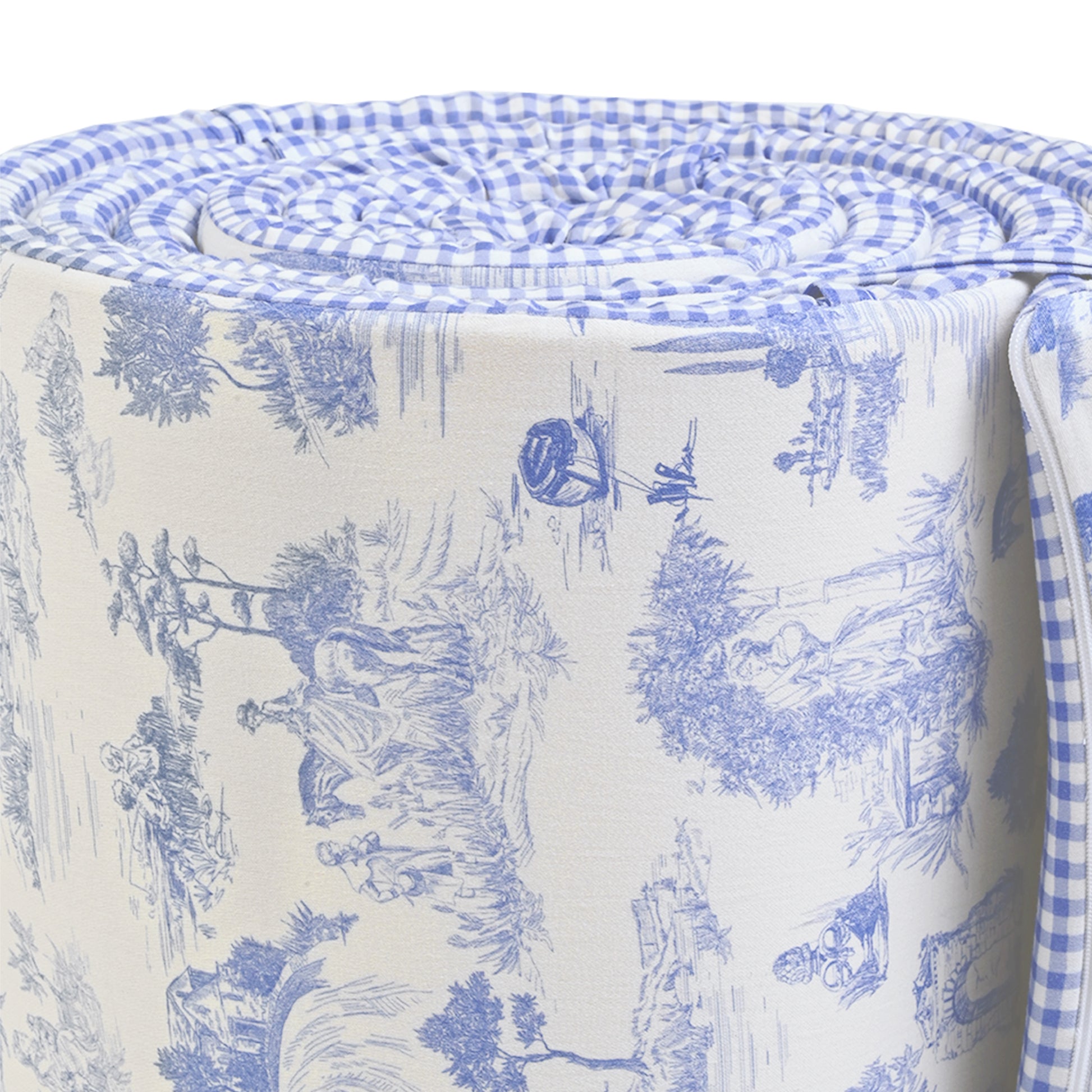 Timeless and elegant, the Blue Toile Crib Bumper is crafted in plush quilted velvet with gentle foam padding. It cushions your baby’s crib with sophistication and care, completing your nursery with quiet luxury.