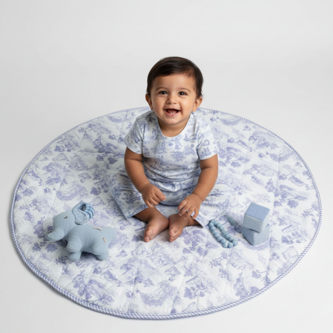 Turn everyday moments into milestones with our Quilted Cotton Playmat. Generously cushioned and beautifully quilted, it creates a safe, cozy space for tummy time, first rolls, or simply stretching out in comfort. The 100% cotton top layer is soft against delicate skin, while the discreet water-resistant underside makes it practical for both indoor and outdoor play. Lightweight and portable, it comes with a fabric carry bag so you can bring comfort along wherever your little one goes. Thoughtfully designed for modern families, this playmat is as elegant as it is essential — a gift parents will treasure and babies will love.